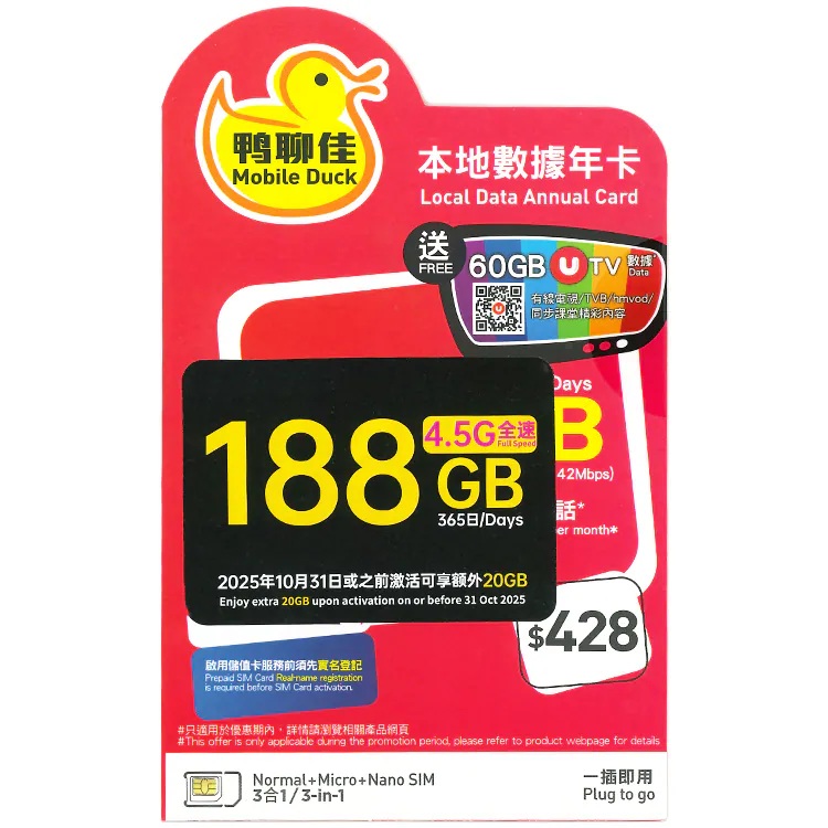 Mobile Duck $428 120GB One Year Local Data SIM Card
