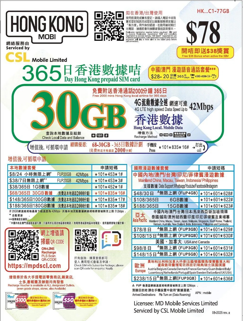 HK Mobile $78 30GB One Year Local Data SIM Card
