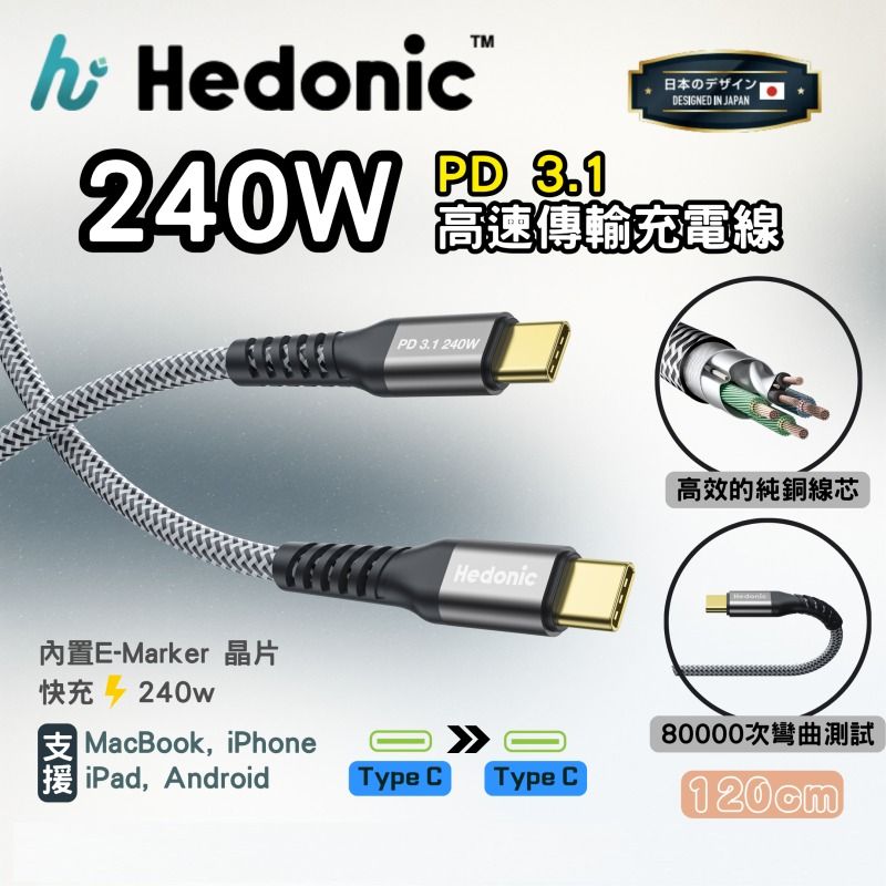 Hedonic 81065 81066 240W Type C to Type C Cable