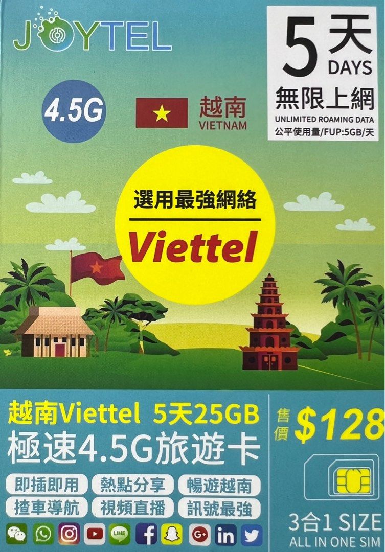 Joytel 25GB 5GB Per Day 5G 5 Days Vietnam Data Sim Card