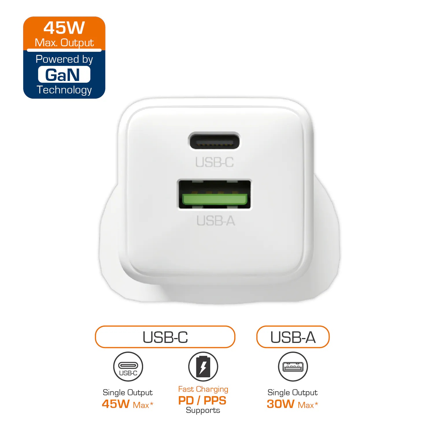 First Champion UWC245PD1C GaN 45W 2 Ports Charger